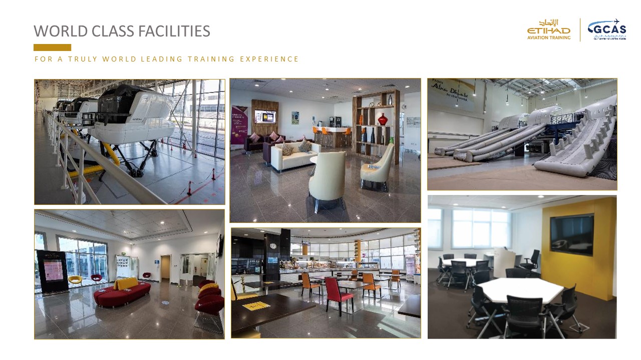 Etihad Aviation Training (EAT) was established in 2014 and provides an extensive portfolio of aviation training courses covering pilot, cabin crew and airport operations. The courses vary from Ab-initio pilot license, Airbus and Boeing type ratings, instructor/examiner training, cabin crew training, ELP testing, First Aid. With the acquisition of GCAS, one of the few centers globally accredited by ICAO, ACI and IATA, EAT expanded its privileges to include training programs focused on Airport Operations, Aviation Safety, Cargo & Dangerous Goods, Health & Safety, Leadership & Management, etc.
